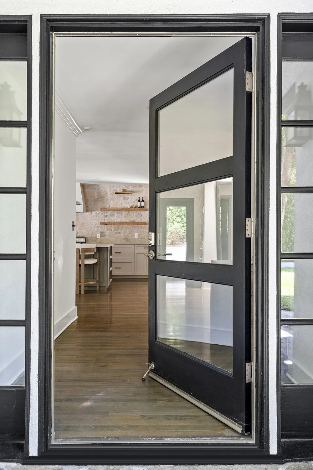 Recently and thoughtfully renovated, the home features a spacious contemporary open floor plan designed for seamless indoor/outdoor living. French doors throughout open to landscaped patios, while high-beamed ceilings with skylights bathe the interiors in natural light, creating a perfect balance of mood and brightness.
